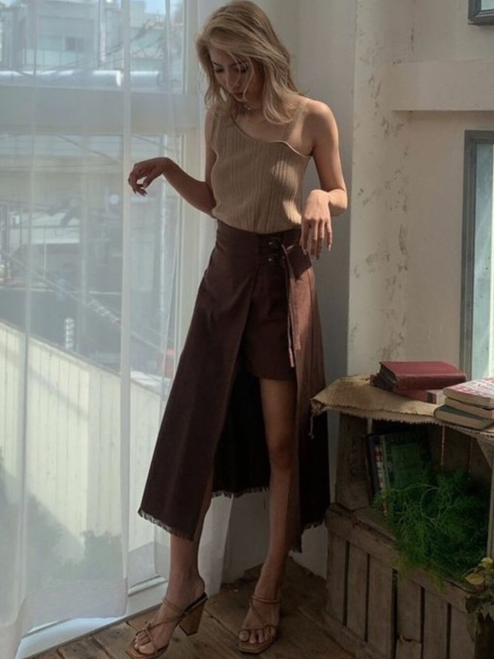 RESEXXYのスカート「ダブルバックルレイヤードスカート」を使ったコーディネート