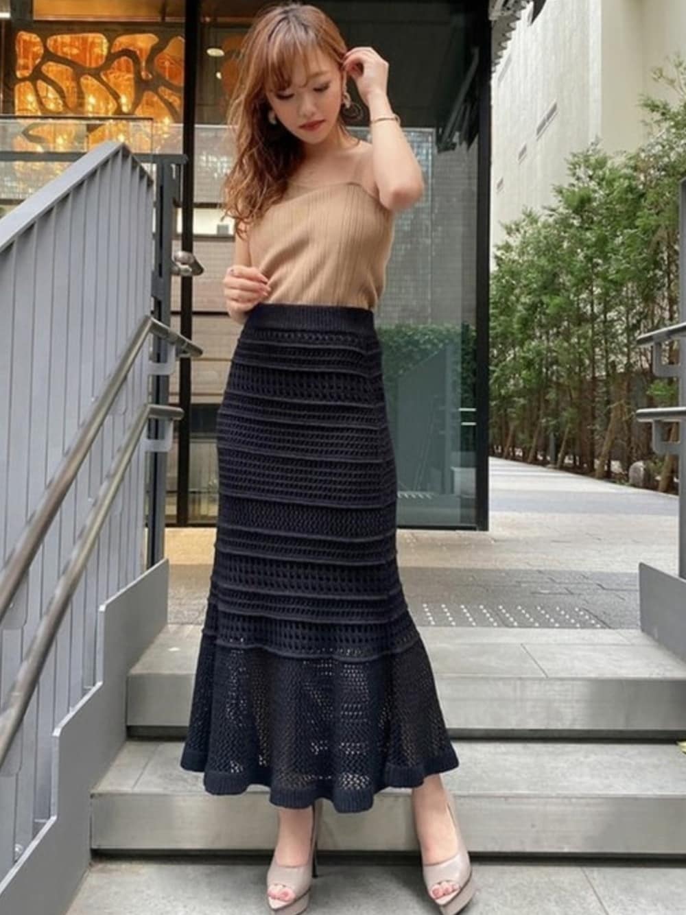 RESEXXYのスカート「鈎針風ニットマキシスカート」を使ったコーディネート