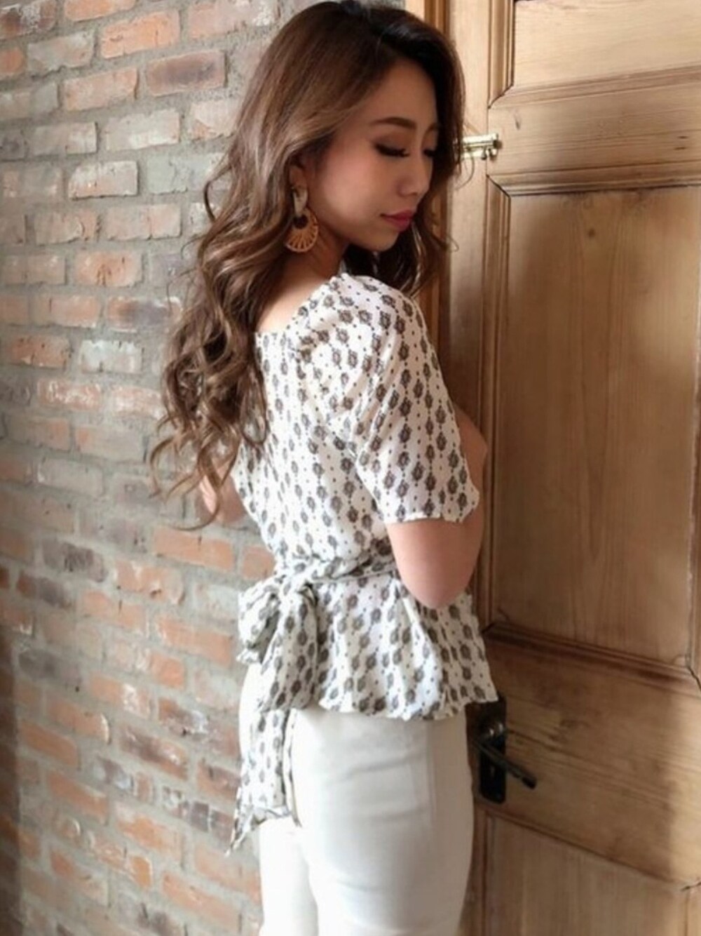 RESEXXYのシャツ/ブラウス「カシュクールバックリボンプリントチュニック」を使ったコーディネート