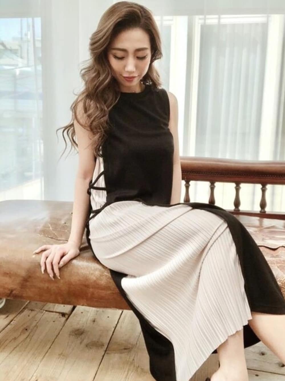 RESEXXYのワンピース「プリーツレイヤードワンピース」を使ったコーディネート