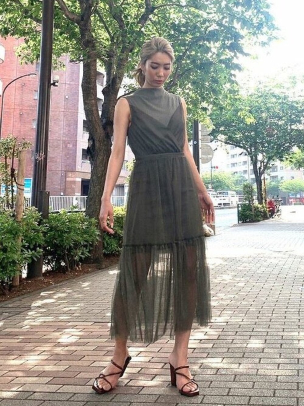 秋トレンドカラーのカーキを取り入れた チュールだけど甘くなりすぎないワンピ❤︎ STAFF:yukino instagram:@yukino_resexxy