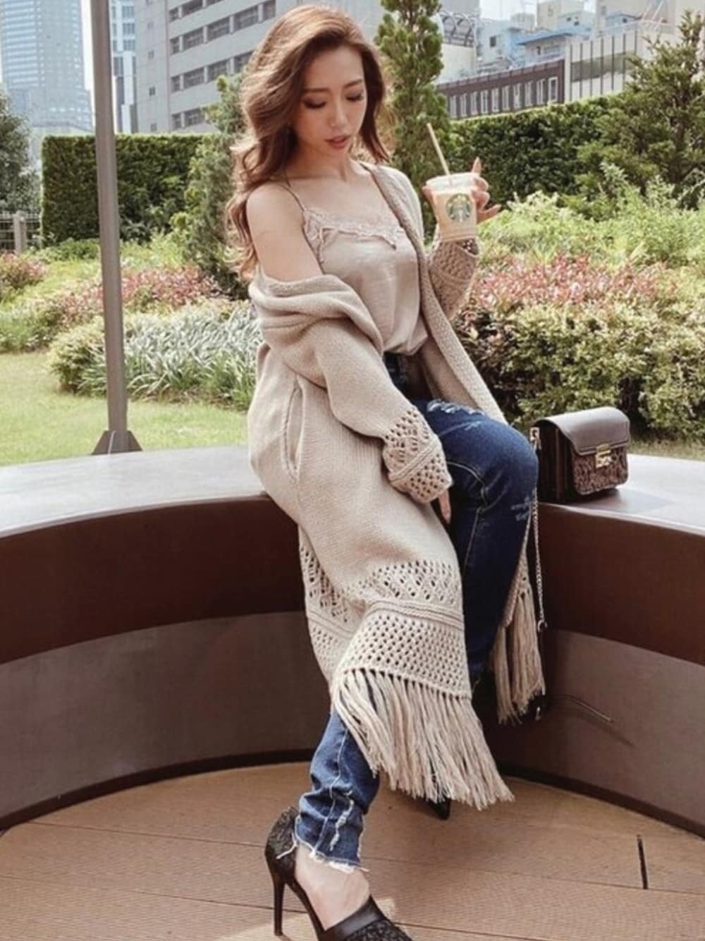 RESEXXYのカーディガン/ボレロ「透かし柄フリンジカーデ」を使ったコーディネート