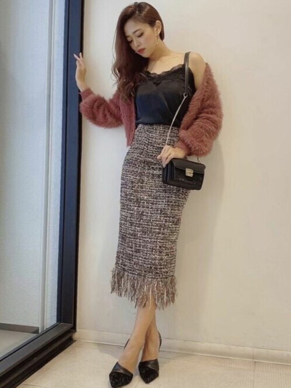 RESEXXYのスカート「ツイードフリンジスカート」を使ったコーディネート