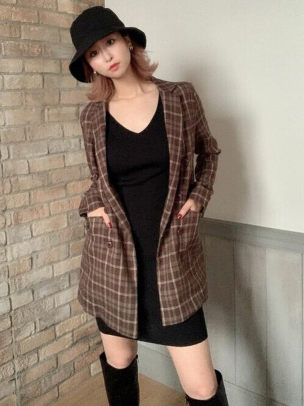 トレンドのチェックジャケットが 主役の秋コーデ♡ ミドルブーツは高身長さんにぴったり♪ STAFF:maiko instagram:@___maikogram___