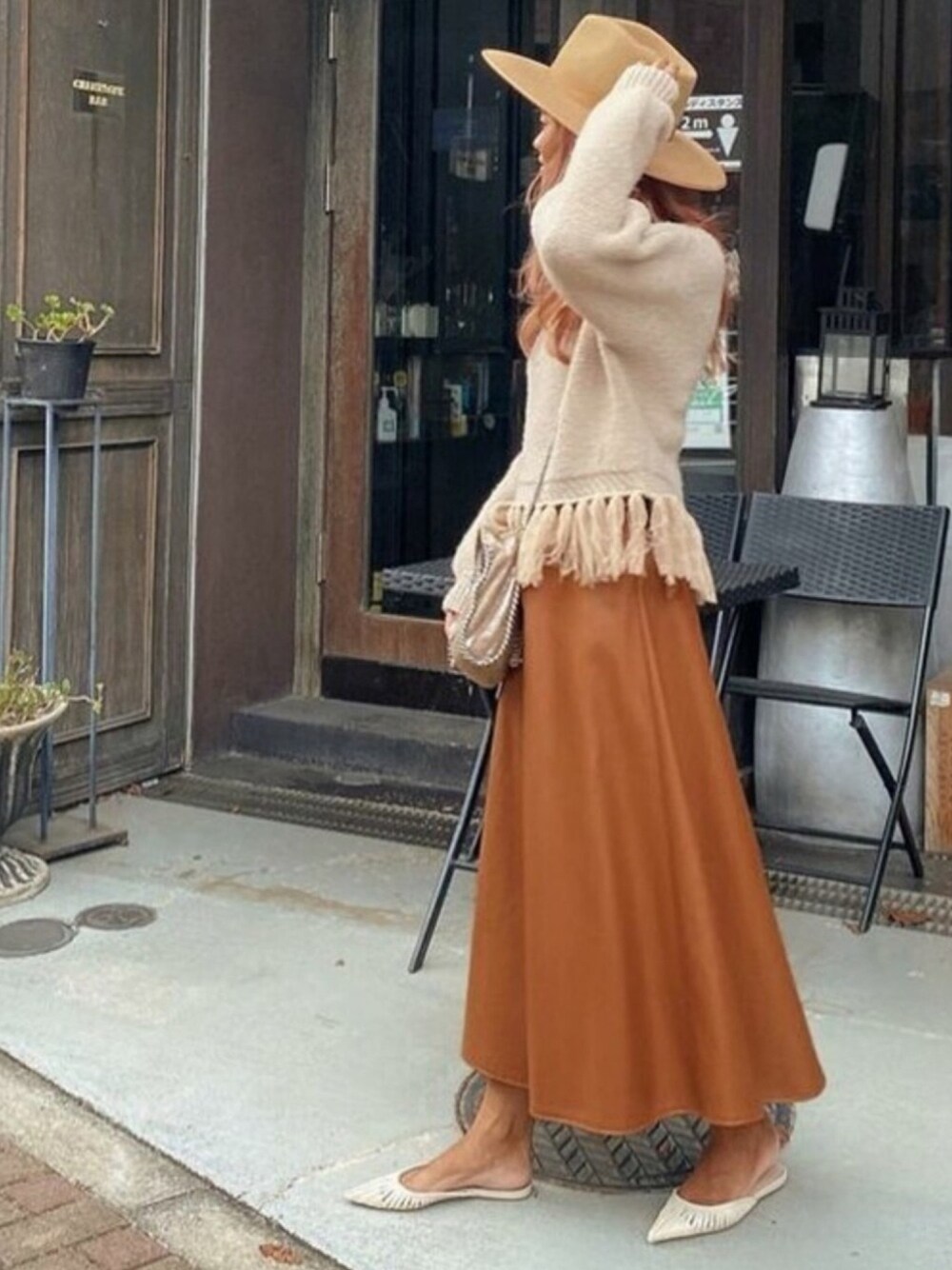 フリンジが可愛いニットをポイントに トレンドのレザーアイテムを取り入れた大人コーデ♪ STAFF:mana instagram:@mana_resexxy