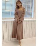 とても春らしいニットワンピース❤︎カーディガンとのセット着用がオススメです! 動きが綺麗に出るプリーツデザインは、着るだけで華やかな印象になります❤︎ カーディガンは、スリーブにボリュームが出るシルエットなので華奢見えして○。 勿論別々で着て頂けるので、コーディネートの幅が広がります❤︎ STAFF:kayo instagram:@kayo_kuwata