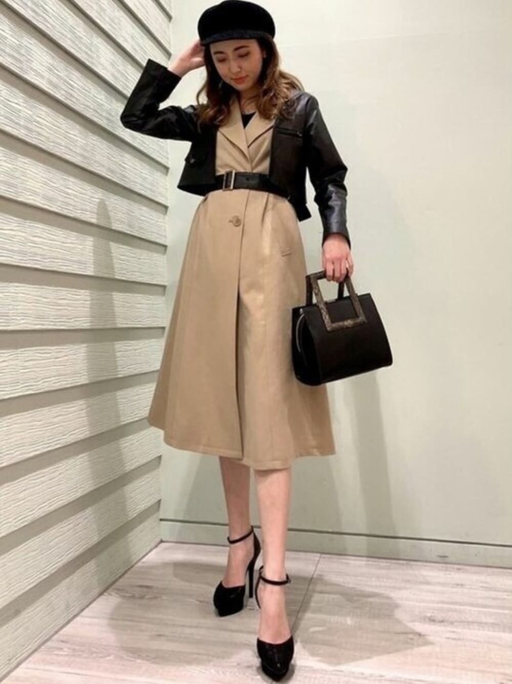 RESEXXYのトレンチコート「ライダースレイヤードトレンチ」を使ったコーディネート