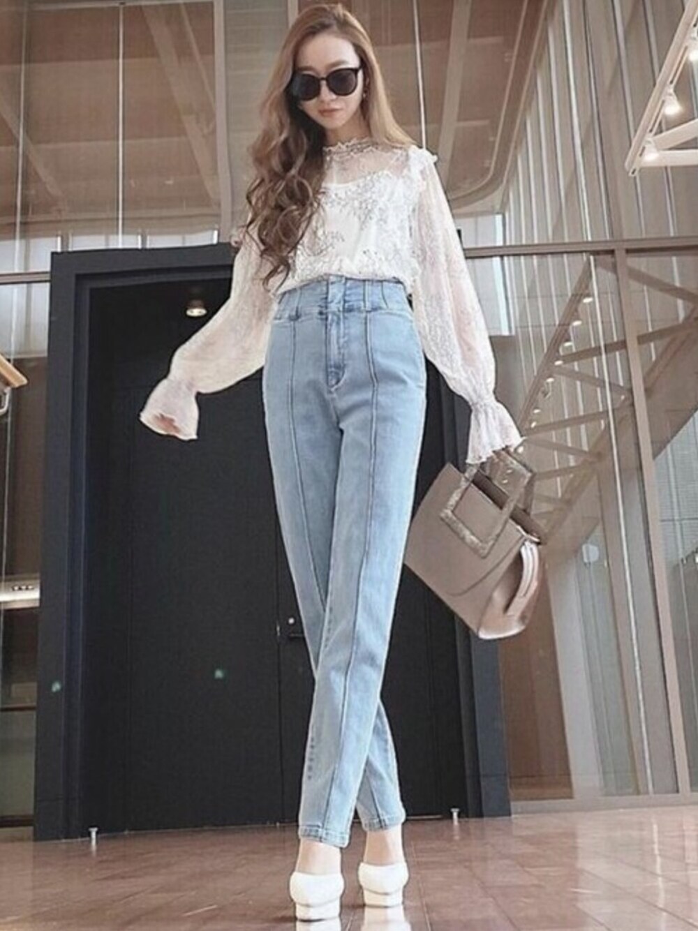 女性らしいレーストップスとデザイン性のあるデニムパンツで春の先取りおしゃれコーデ! シューズもさりげないレースで統一してまとまった印象に☺︎ STAFF:kurumi instagram:@kurumi_resexxy