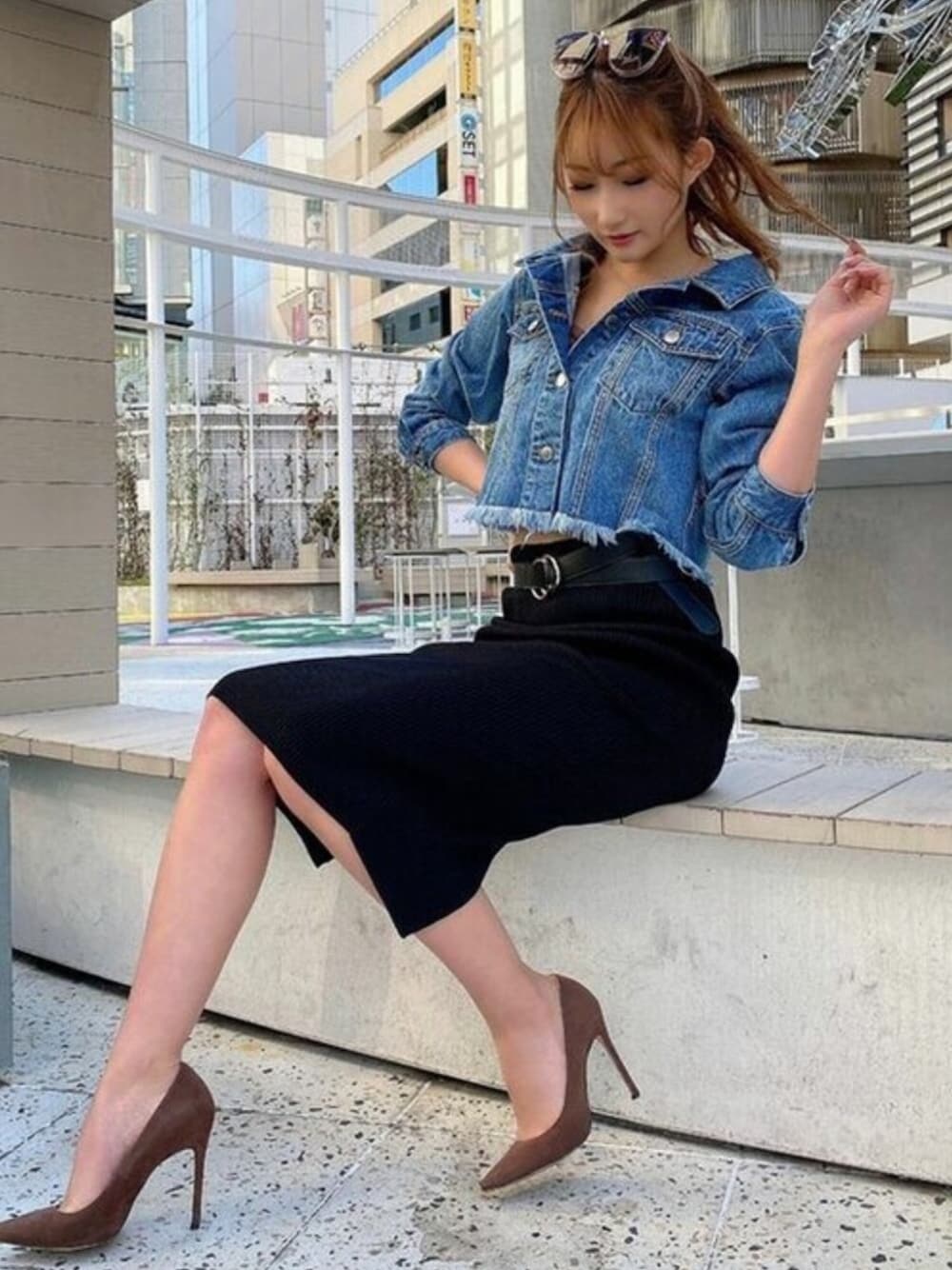 レディな印象のタイトスカートに、あえてGジャン合わせてカジュアルダウン! ハイウエストボトム×ショート丈アウターでスタイルアップ効果も◎ STAFF:koyo instagram:@koyo_rs