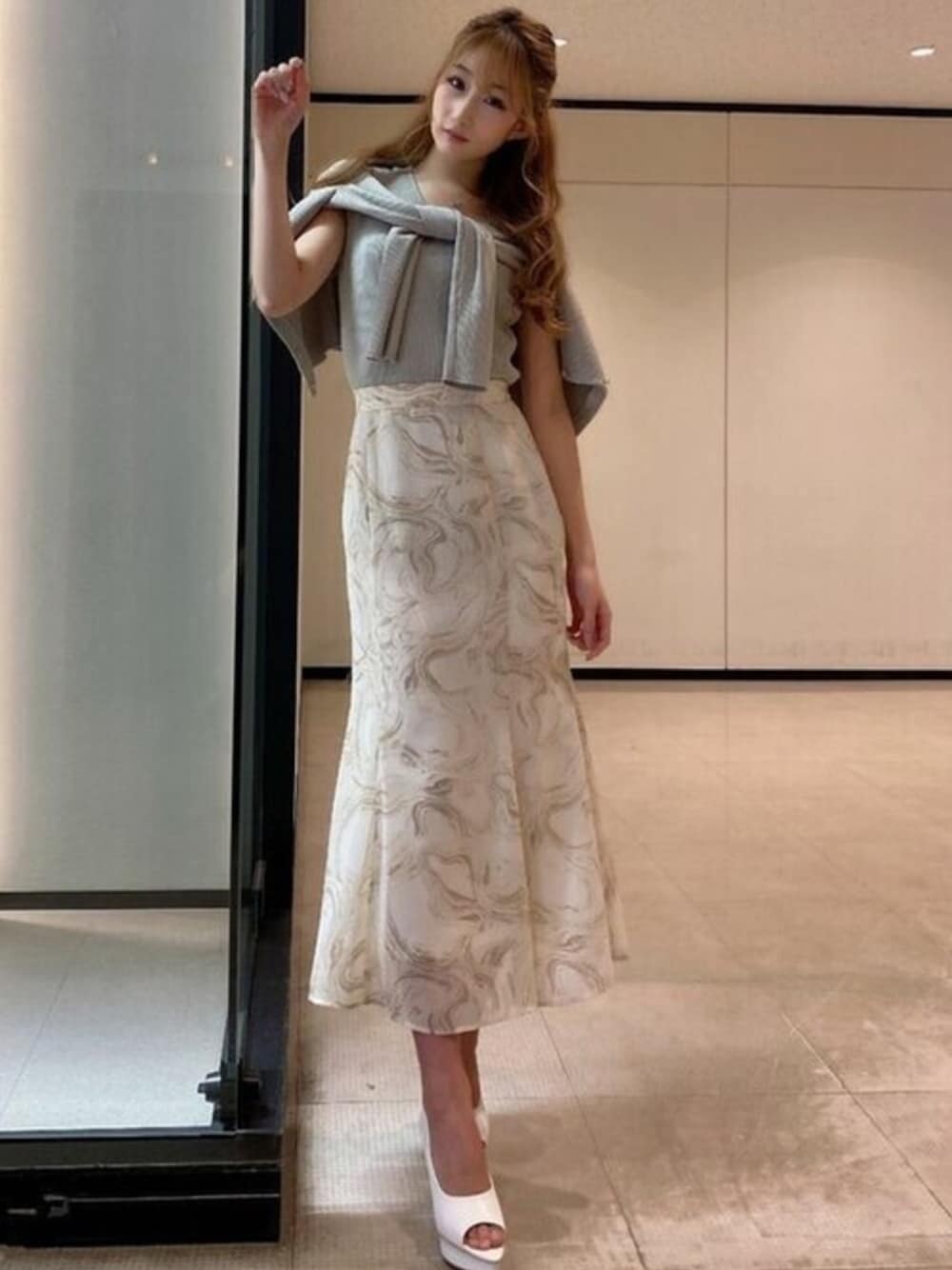 カーデを肩掛けでこなれ感♪ 柄スカートもベージュカラーでシューズと同色でまとめ、 ミントグリーンの差し色も映えて一気に春らしいコーデに♡ STAFF:koyo instagram:@koyo_rs