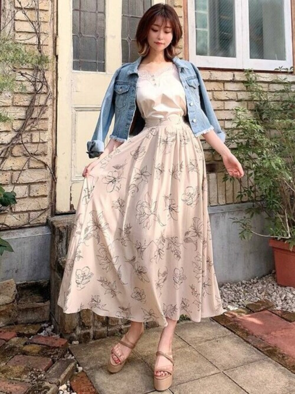 簡単に春コーデが完成しちゃう、Gじゃん×フレアスカートの組み合わせ♡♡ 春らしい花柄アイテムはマスト!! スカートがコーデの主役なのでトップスとアウターはシンプルに♪ ベージュ系のワントーンコーデが今年っぽい♡ RESEXXYのGジャンはジャストウエストなのでワンピースはもちろん、フレアスカート合わせもバランスgood!! ウエッジサンダル着用で脚長効果も忘れずに♪ STAFF:maiko instagram:@___maikogram___