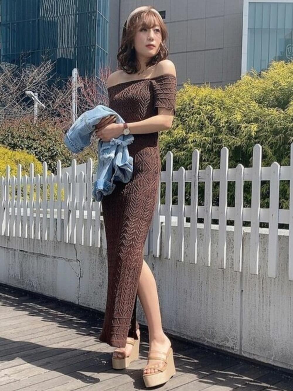 鈎針風ワンピのNew ver.♡ オフショルで着れますがタイトめなロングワンピなので大人なセクシーさを演出できます♡ 左側のみサイドスリットが入っているので足も綺麗に見せてくれます! 裏地が膝上丈なので透け感もとてもオシャレです! 夏らしい鈎針なので足下はパンプスよりもサンダルがオススメです! もう少し暖かくなればシアーシャツを羽織るとより抜け感をだせます♡ また161cmで足首くらいの丈感なので、150cm台の方はベルトでブラウジングする事をオススメします! STAFF:maki instagram:@maki___rs