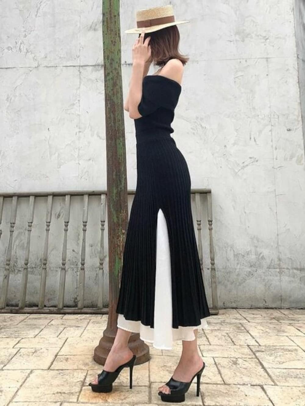 RESEXXYのワンピース「オフショルプリーツ切替ワンピース」を使ったコーディネート