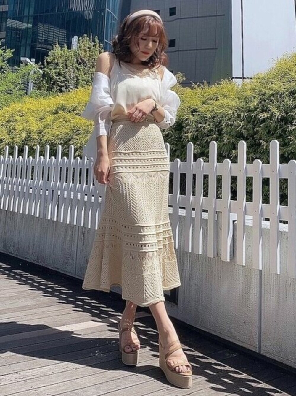 お洒落且つ着回しの利くマストアイテム! 鈎針風ニットマキシスカートの新色アイボリー♡ ワントーンでまとめ、ワンランク上の大人コーデに♡ 昨年とスカートの編み目が変わり、よりマーメイドシルエットのようなクビレが際立つデザインに進化しました。 ウエストは太めのゴムでかなりフィット感があります。 またマキシスカートは、長すぎない丈感で低身長の方から高身長の方まで着て頂けます。 Tシャツ合わせでカジュアルダウンも出来ますが、あえてレースサテンキャミとシアーシャツをレイヤードさせ、 RESEXXYらしさを引き立たせました。シアーシャツは付属のベルトを後ろで留め、 ウエストをスッキリ見せる事で、ショート丈でなくてもバランスの良いコーデに。 レースサテンキャミは光沢感があり、女性らしい抜け感を出しやすいアイテムなので、 ジャケットのインナーとしてもお使い頂けます。 RESEXXY定番の合わせのキャミ×シアーシャツは、どんなボトムにもマッチし、キャミワンピとも相性抜群です。