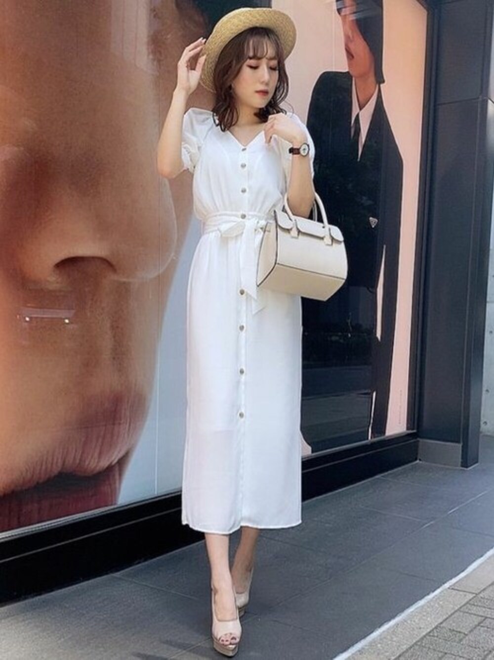 フロントボタンとウエストリボンの合わせやすいシンプルなデザインに惹かれたシャツワンピ♡ 春夏はホワイトなど明るいカラーが気分なので、ホワイトメインでベージュ系の小物をチョイス。 ゴールドがPOINTのバッグでキレイめに、そしてボーターハットで季節感を出しつつ柔らかい印象に。 Aラインではなく広がらずストンと落ちるシルエットのワンピースなので、 可愛らしさもあり、且つ大人っぽさも兼ね備えている為、大人なガーリーコーデに♡ また、パワショル風デザインの袖+ノーカラーの襟元で、カチッとし過ぎず、 スニーカーとも相性が良くプライベートでも着やすいアイテム。 Gジャンやライダースと合わせて頂くと長い期間来て頂けます! STAFF:maki instagram:@maki___rs