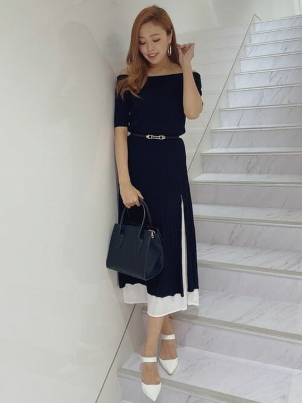 1枚でオシャレに見えるオフショルプリーツ切替ワンピース♡オフショルって動きにくくて、 着にくいって方がほとんどだと思うんですがこのオフショルはかなり柔らかく動いていても本当に着やすくて驚きました(^^) スカートのところが切替になっているのでシンプル過ぎず動いた時にひらひらする感じがとても可愛いです! ベルトは付属ではないのですが、ウエストにポイントで持ってくる事でスタイルアップしてみえます! カバンのゴールド×ブラックと揃えています。 モノトーンなコーデにしたかったのでシューズは切替部分のホワイトと揃えてホワイトにしてます♪ STAFF:shiho instagram:@shiho__rs
