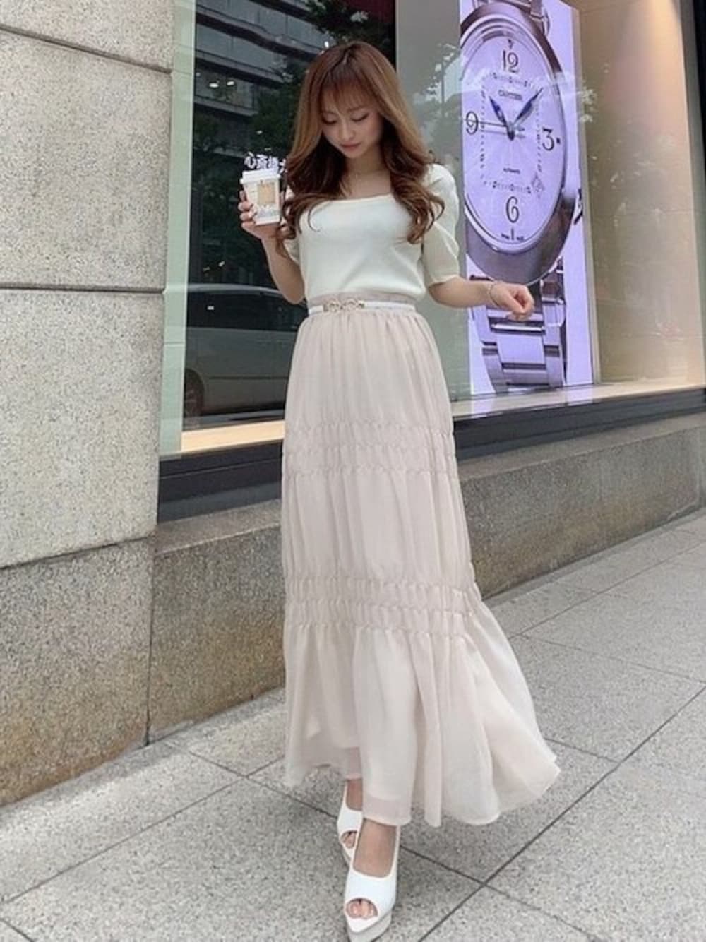 パフスリーブトップス×ティアードデザインスカートの組み合わせでガーリーな雰囲気に❤︎ トップスはスクエアネックの為デコルテラインを綺麗に見せてくれ、 スッキリとした印象になるのでネックレスを+するだけでポイントになります♡ 又スカートがふんわりとしたボリュームのあるデザインの為、トップスはタイト目なTOPSでバランスを取るのがオススメです! STAFF:yuuri instagram:@yuuri_resexxy