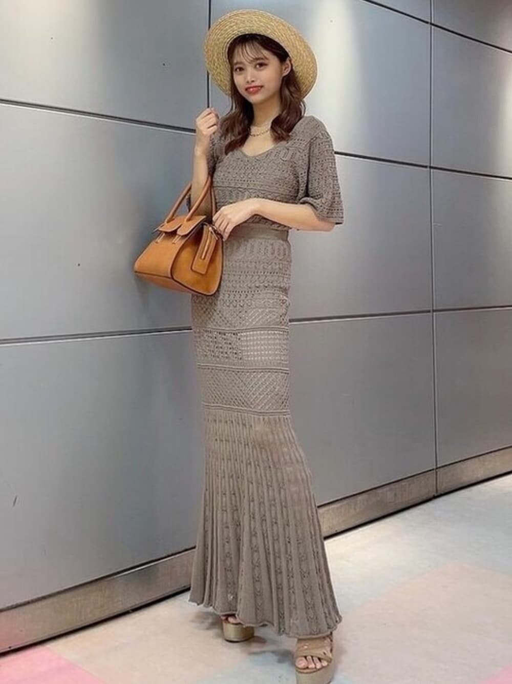 昨年大人気で即完売したクロシェのワンピースが今年も登場!! 昨年より袖部分がゆったりしているので二の腕カバー出来て細見えに♡ マーメイドシルエットなのでラインを綺麗に見せてくれて着るだけで女性らしさ満点◎ バックリボンで背中の開いたデザインですがインナーが見えないようになっているので安心して1枚で着て頂けれます! 私はブラウンのワントーンで合わせて甘くなりすぎないようにコーディネートしました♪ STAFF:ai instagram:@ai_____rs