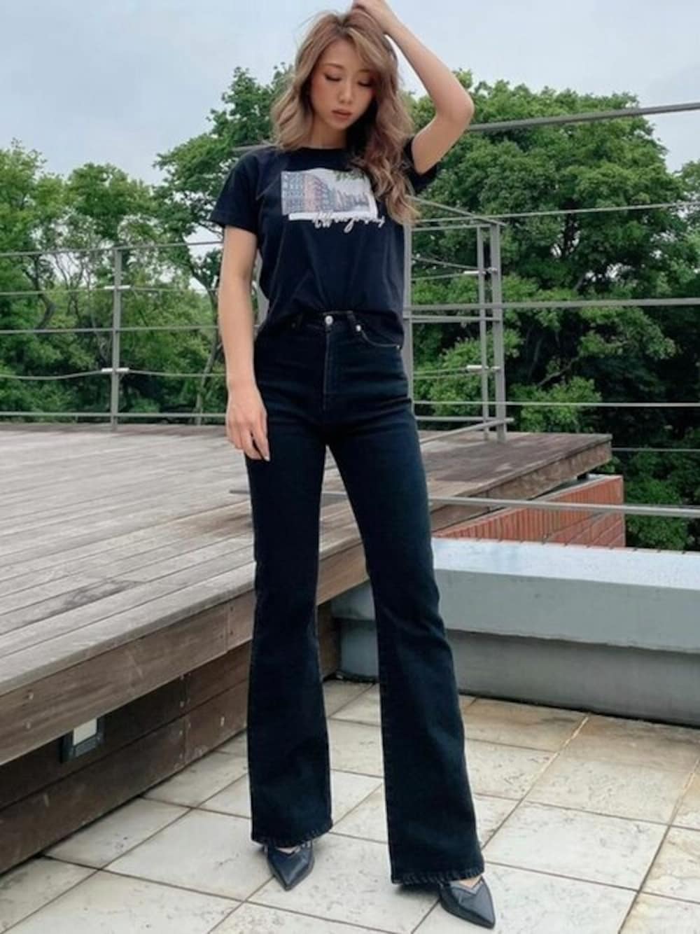 新デザインのTシャツでオールブラックコーデ! シルエットのキレイなパンツ×ピンヒールで合わせて ラフ過ぎないコーデに◎ STAFF:rino instagram:@rino_resexxy