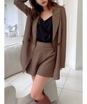 セットアップは別々でも大活躍する万能ITEM♪ 新色のモカのジャケットはシンプルなキャミと合わせてスッキリ着てもロゴTを合わせても◎ ボトムはショートパンツをチョイス❤︎ STAFF:erika instagram:@erika_resexxy