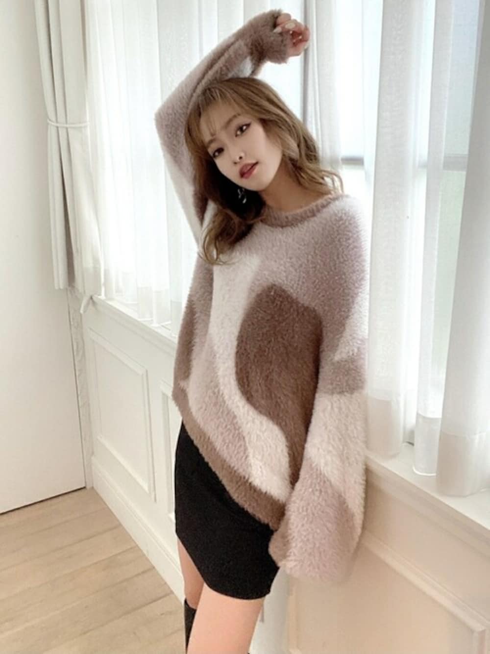 ふんわりシャギーニットはモテ服間違いなし! 今年らしいニュアンスのMIXカラーが目を惹く1枚♡ 腰回りをカバーしてくれる絶妙な丈で、フレアパンツやスキニー等スリムボトムとの相性◎ STAFF:erika instagram:@erika_resexxy