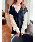RESEXXYのベスト「ニットベストレイヤードシャツチュニック」を使ったコーディネート