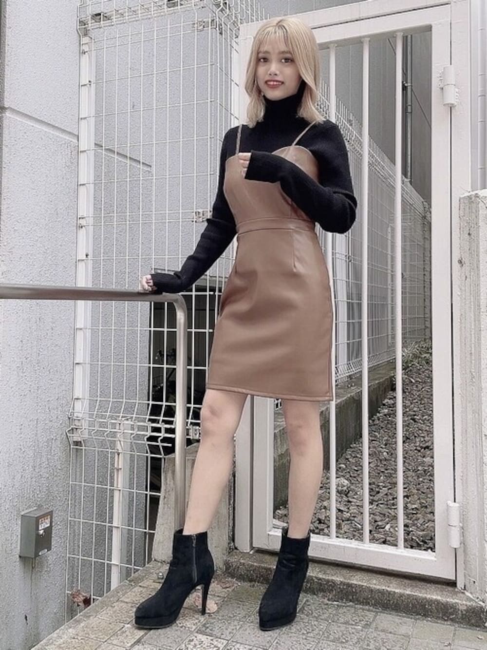 レザーが目を惹くキャミワンピース❤︎ フェイクレザーなので生地感柔らかくなっており、タイトシルエットですがきつくなく着心地抜群のレザーワンピースです! 肩紐の三つ編みがポイントで他とは被らないデザインに❤︎ STAFF:ai instagram:@ai_____rs
