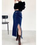 一見シンプルなコーデですが、ニットのカシュクールやスカートのスリットで程よく女度アップ! スタイルアップできるようなシルエットにこだわったスカートは、トップスをインしてより脚長見え♪ STAFF:miyu instagram:@miyumiyu1112