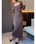 RESEXXYらしいディープスリットの色っぽワンピース♡ ブラウンをチョイスすることで上品さをプラス。 更にスクエアネック+パワショルデザインで顔周りがスッキリし小顔効果に♪ STAFF:maki instagram:@maki___rs