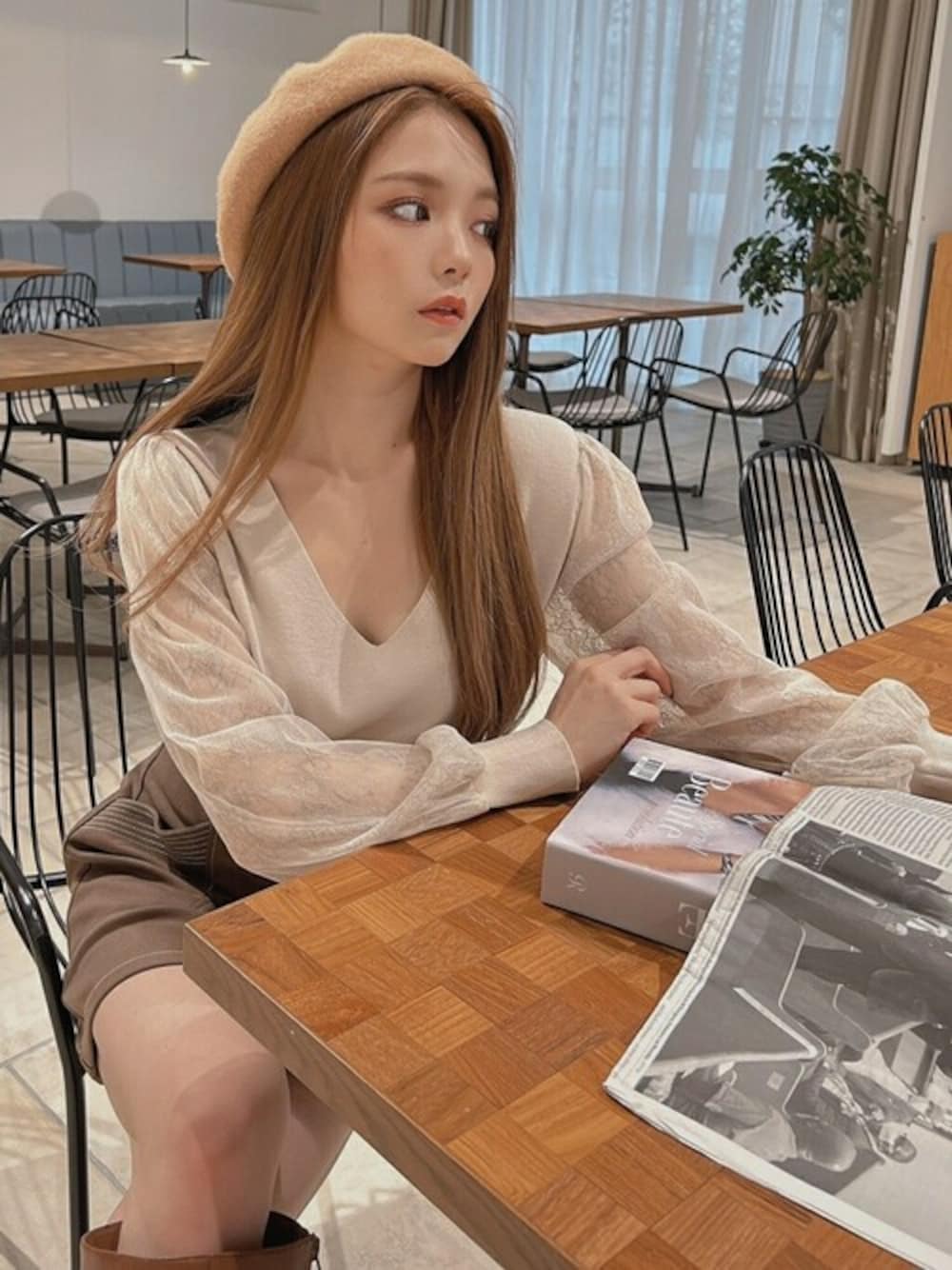 大人気ブラウン系ワントーンコーデ♪ ミニ丈ボトム×ロングブーツでトレンド感もバッチリ! 袖部分のレースが可愛いニットは、アウターの中に来ても着太りしないちょうど良いボリューム感です。 カフェや映画など、アウターを脱ぐ機会がある日におススメ♪ STAFF:miyu instagram:@miyumiyu1112