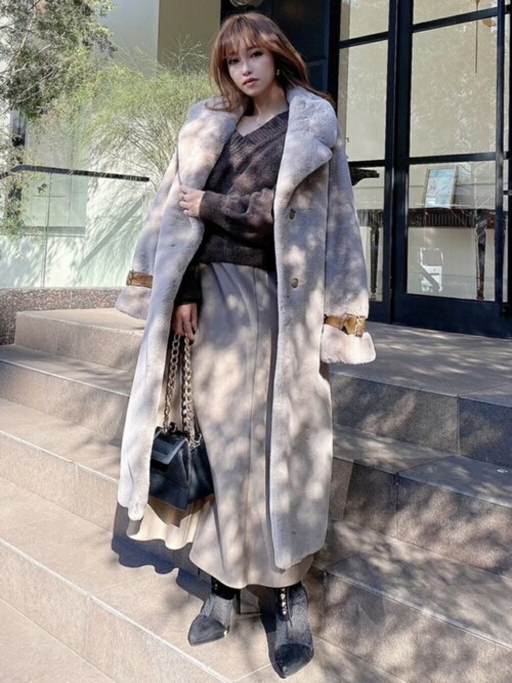 高級感溢れるファーコート♪ 重くなりがちなファーコートは襟元をスッキリさせるとバランスgood! ロングスカートで合わせて肩がけスタイルも◯ STAFF:erika instagram:@erika_resexxy