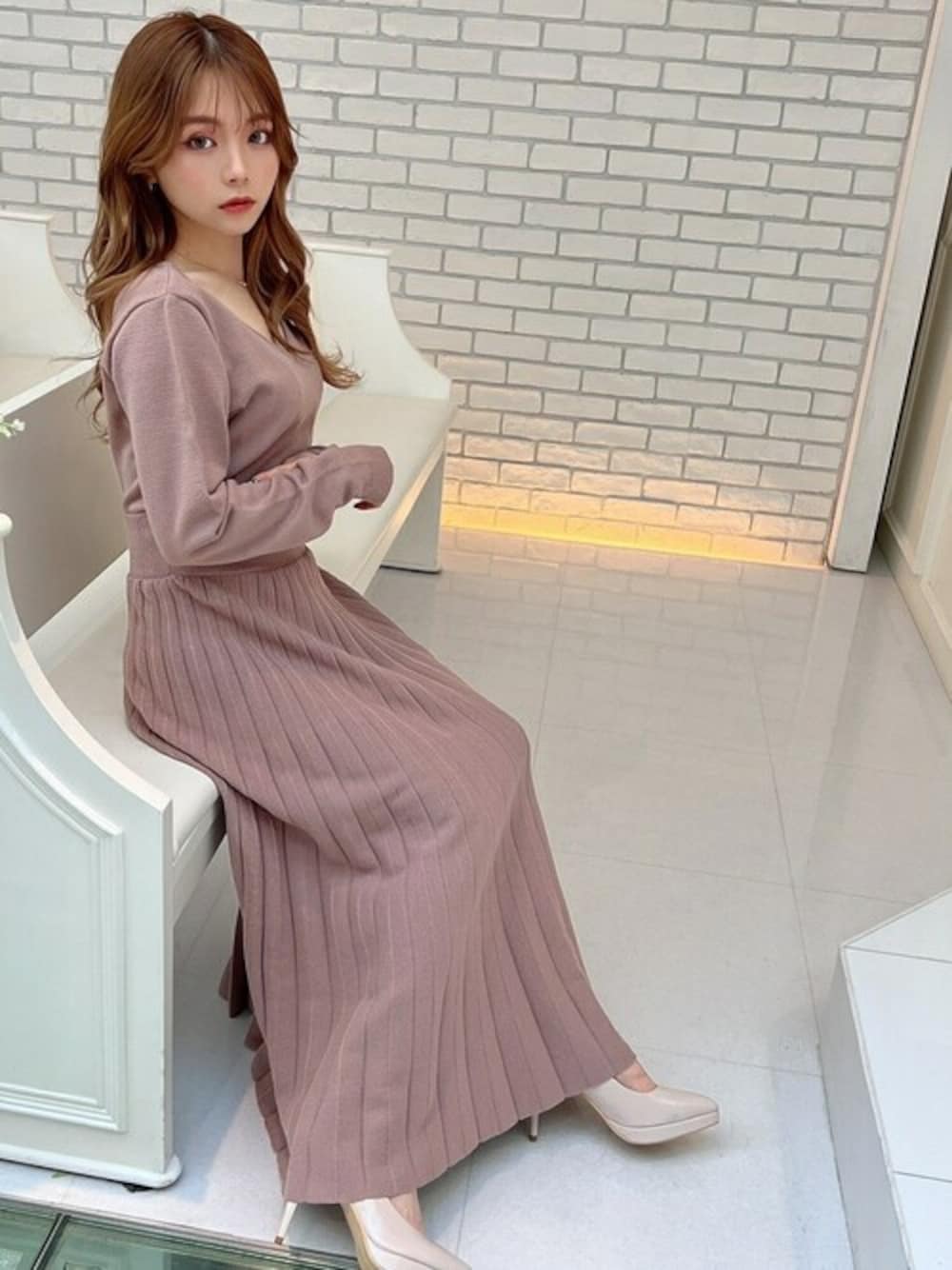 RESEXXYのワンピース「プリーツロングニットワンピース」を使ったコーディネート