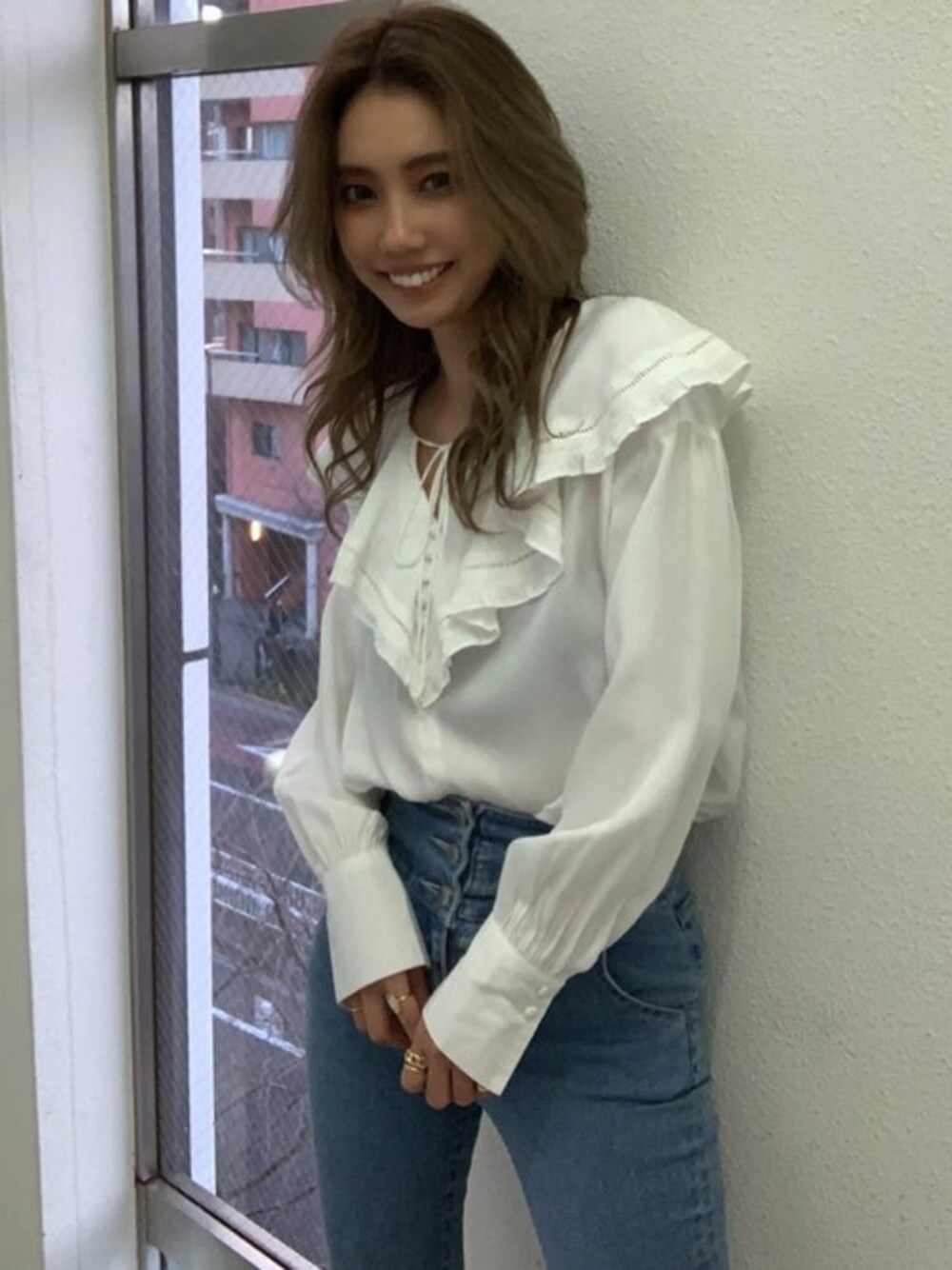 大きめのラッフル衿デザインが今年らしいブラウス❤︎ ボリュームたっぷりなシルエットなのでボトムにインするとバランスよく着て頂けます◎ STAFF:yukino instagram:@yukino_resexxy