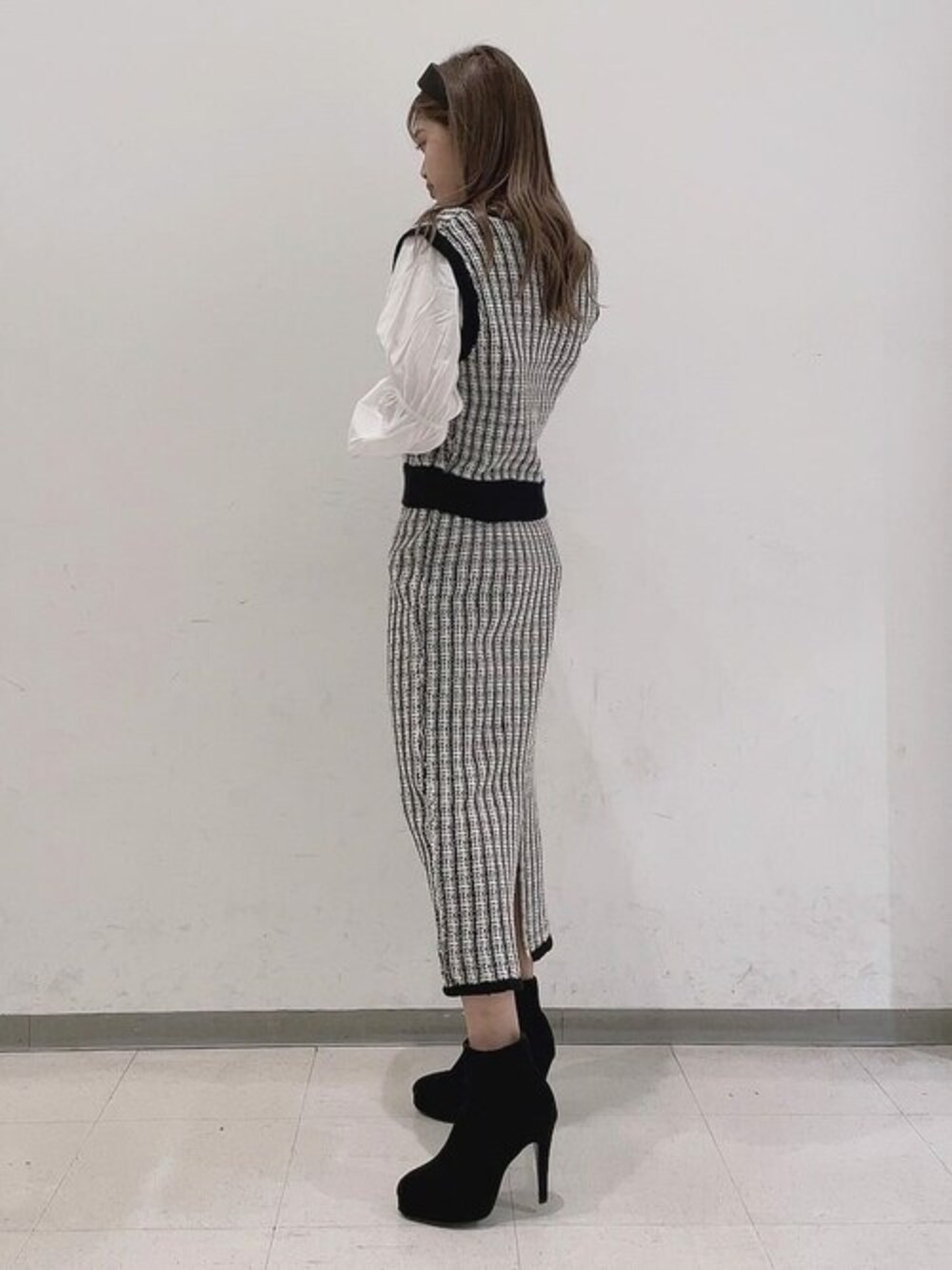 RESEXXYのベスト「ドッキングツイードニットトップス【セットアップ着用可能】」を使ったコーディネート