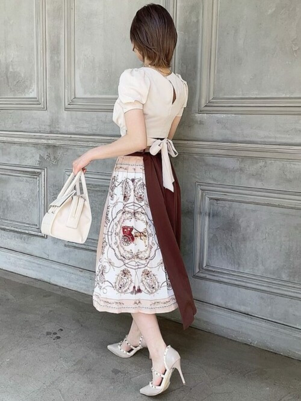 スカーフ柄が華やかさ溢れるエレガントな大人コーデ。 スタイルアップ効果抜群のブラウスです! スクエアネック×ショート丈なので上半身を華奢に見せてくれます♪ STAFF:moeka instagram:@moeka_rs