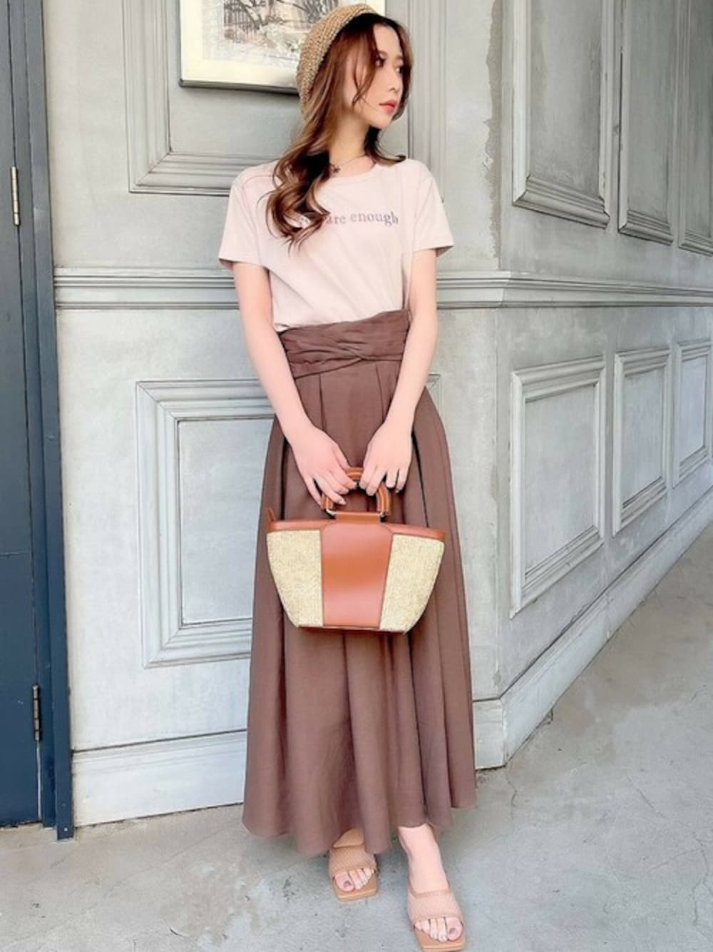 ブラウン系カラーでまとめた夏コーデ♡ 着回しのしやすい程よいクロップド丈のTシャツは1枚あると便利なアイテムです! STAFF:mika instagram:@mika_resexxy