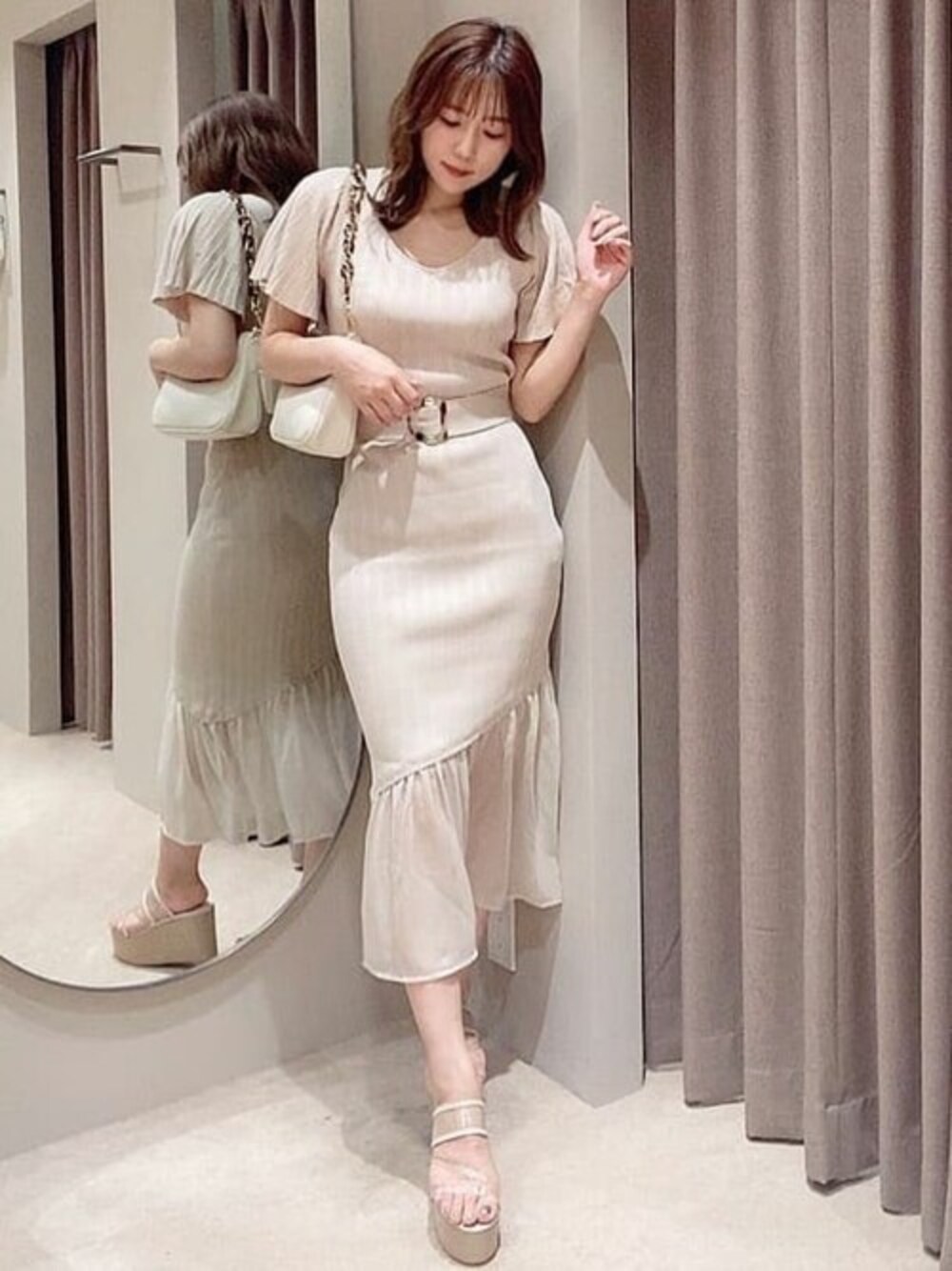 RESEXXYのワンピース「2wayショルダーマーメイドニットワンピース」を使ったコーディネート