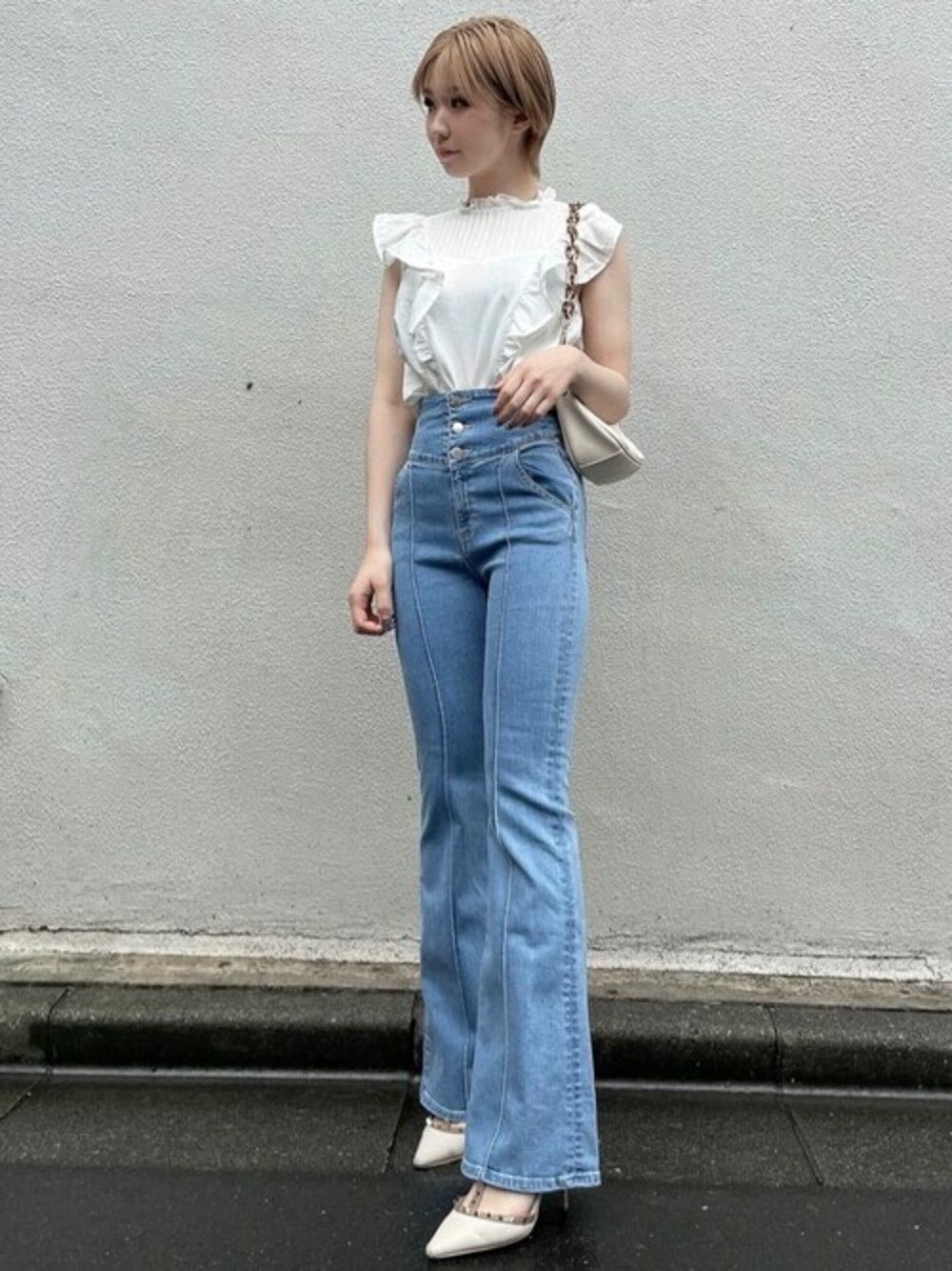 RESEXXYのシャツ/ブラウス「ピンタックデザインラッフルブラウス」を使ったコーディネート