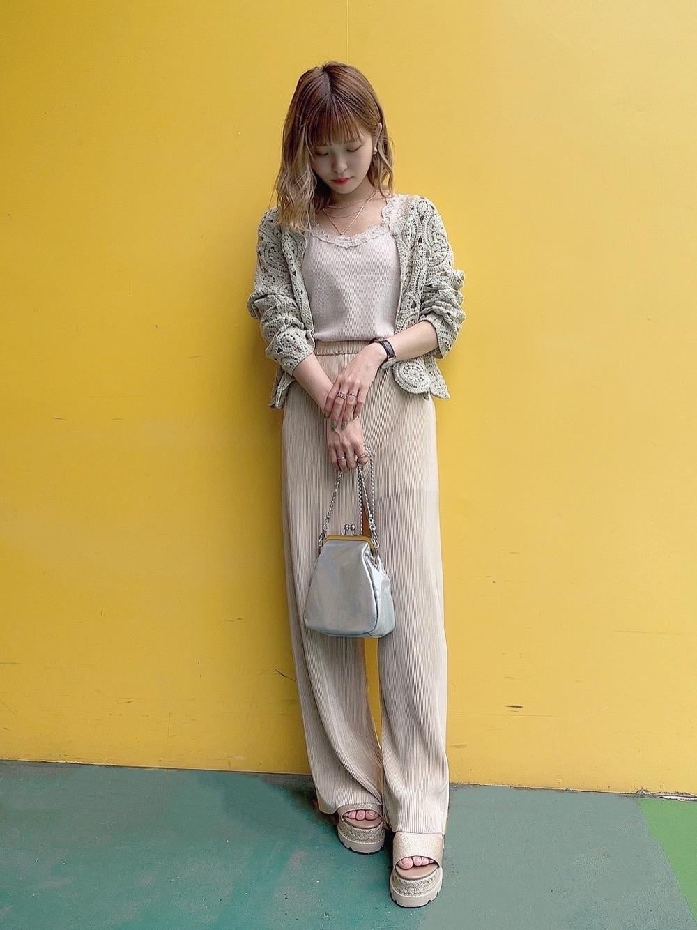 大人気のクロシェカーデは2wayで前後どちらでも着られます♡♡ 絶妙なクリーム色が可愛いプリーツパンツは裾から30cmまでcutできるので低身長でもぺたんこを履いても地面につかずに着られちゃいます! ちなみに150cmでcutせずこの丈感なので高身長さんでも着られます◎