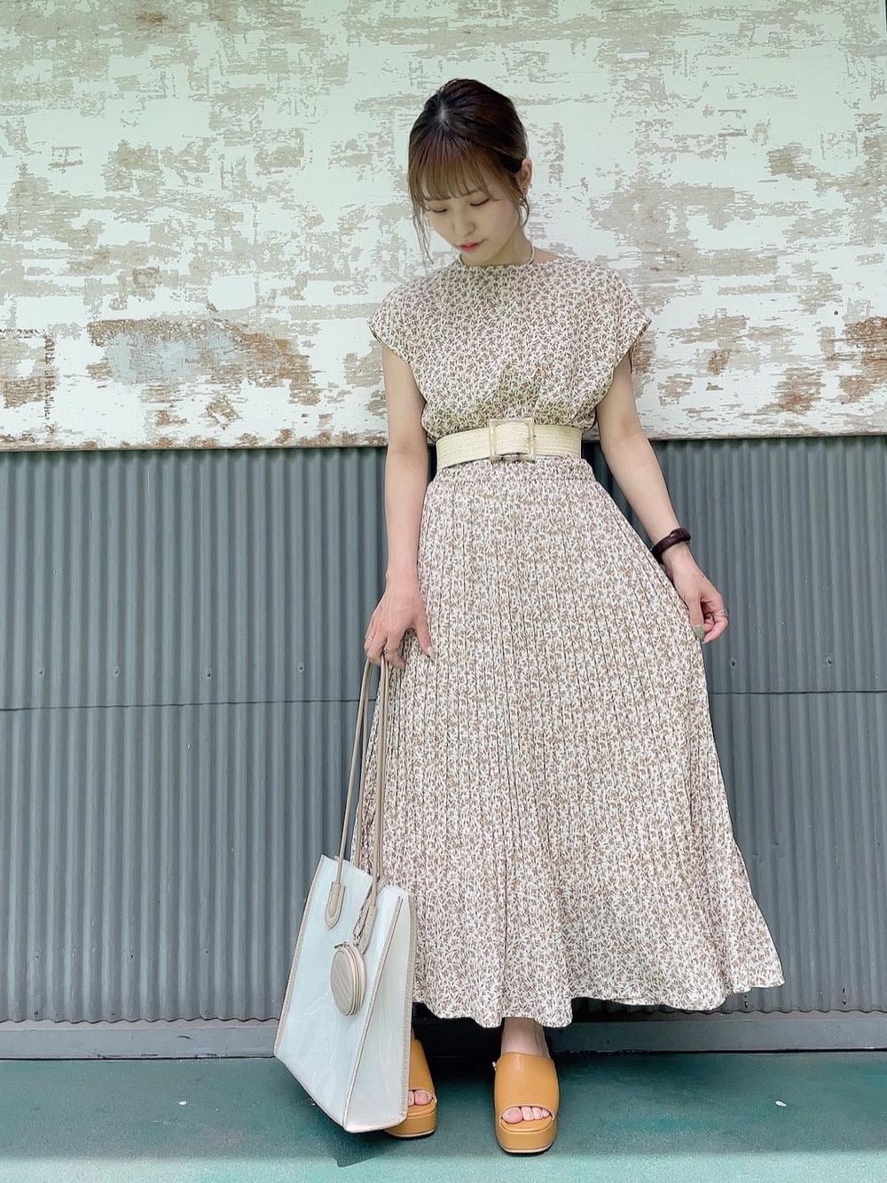 小花柄が可愛いワンピースはプリーツになっていて揺れるととっても可愛い!ウエストに細いゴムが2本入っているのでベルトがなくても一枚でさらっと着ても◎