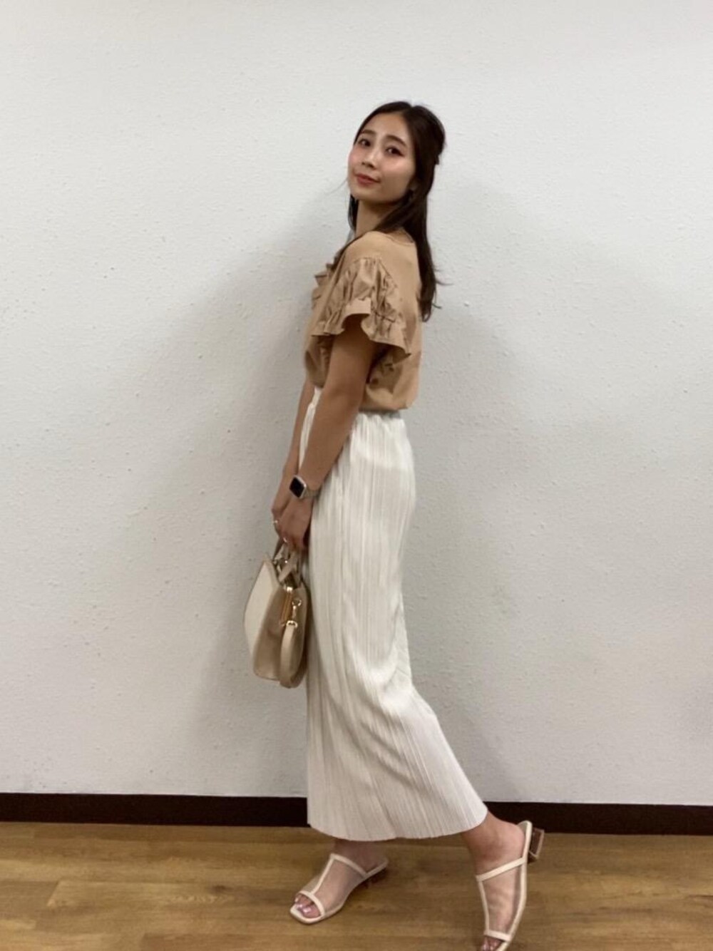 人気の淡色コーデ タイトスカートで合わせてあげるとグッと女性らしさが増します!デートでも使えそう♪
