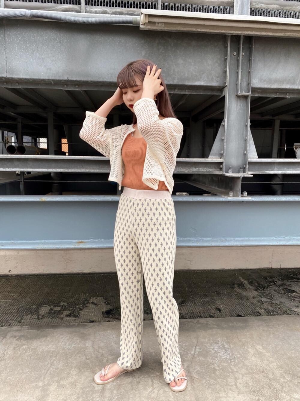 オールホワイトの差し色としてオレンジを入れました! リブタンクにメッシュカーデを合わせて夏らしさを🌞🍧🐬