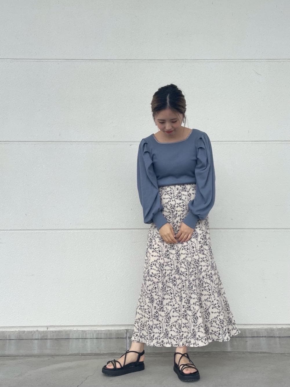 パイピングがアクセントのかわいいカットソーに花柄のスカートできれいめのコーデにしてみました♪ 肌寒い日にちょうどいいお洋服です(^ω^)