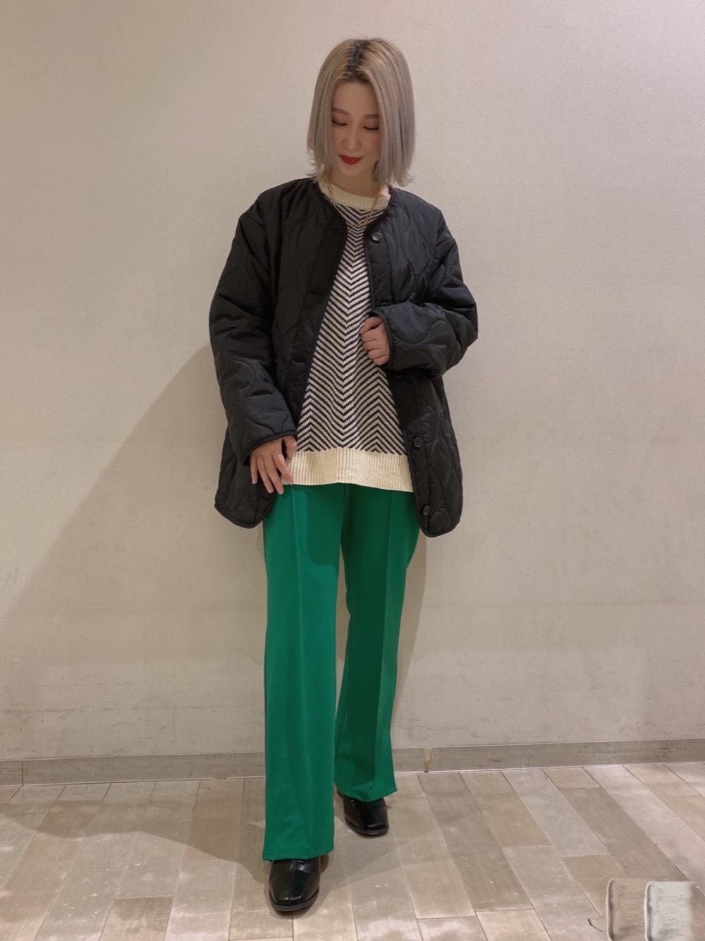 大人女子の冬コーデ♥︎ トレンドの柄ニットにキルティングコートであったかく♥︎ カラーパンツでオシャレ上級者さんに‧˚₊*̥(∗*⁰͈꒨⁰͈)‧˚₊*̥ ニットはゆったりサイズなのでママさんにもおすすめです♥︎