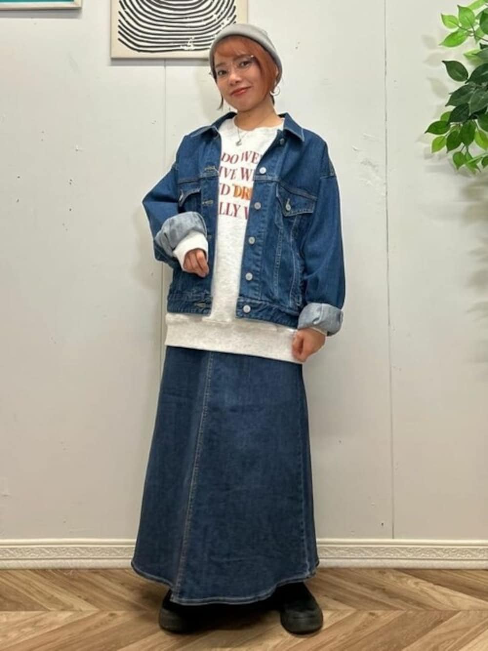 ★デザインロゴスウェット Mサイズ着用してます‼︎ お尻くらいの丈感で、シルエットも大きすぎなくて小柄なわたしがMサイズを着ても、ちょうどいいサイズ感です😊 スウェットはカジュアルなアイテムだからこそロゴデザインは派手すぎないものを選ぶと低身長でも程よくカジュアルに着れますよね✨
