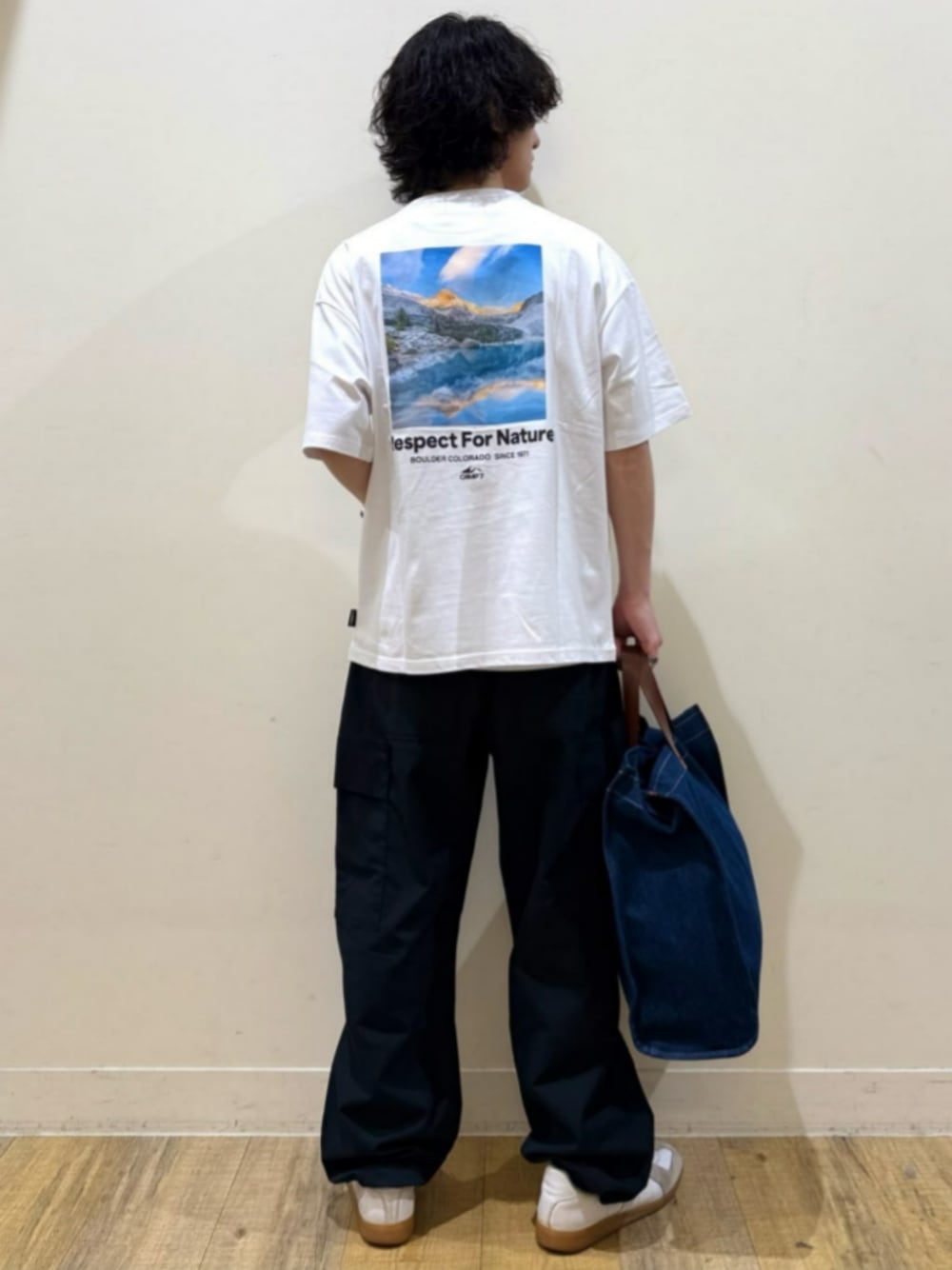 【バックフォトプリントTシャツ:Lサイズ着用】 ♦️1枚でもインナーでも使いやすいバックプリントT! 🔹普段お選びのサイズでジャストで着れます◎ 【接触冷感ナイロンオーバーパンツ:Lサイズ着用】 ♦️Tシャツはもちろん、キレイめなシャツと合わせても、また違った大人カジュアルコーデが楽しめてオススメ👍 🔹物凄く軽量素材で、肌触りもひんやりするので暑い時期にオススメなアイテム