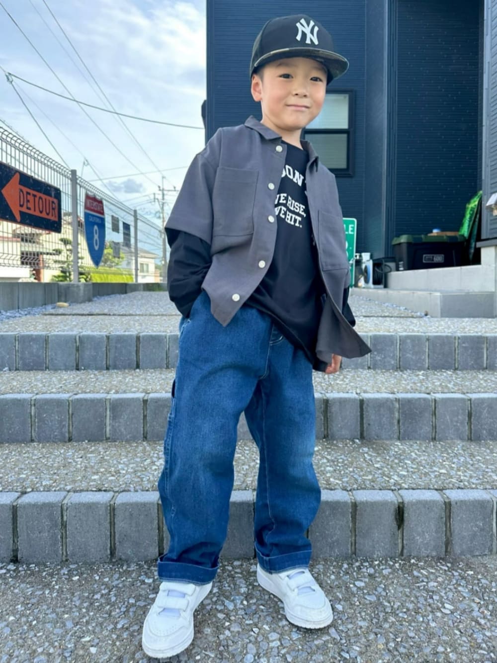 身長:115cm 体重:20kg 3月産まれの6歳 小学1年生👦🏻🎒 \普段の着用サイズ/ トップス👕:130〜140 ボトムス👖:120〜130 少し大きめ『ゆるダボ』で着ることが多いです! 【ロゴデザイン長袖Tシャツ】 ゆったりとしたシルエットの長袖Tシャツ!着回し力の高いロゴTなのでお出かけはもちろん、通学通園にもおすすめのアイテムです🍂袖ゴムでお子様が腕まくりしても落ちてこないのが◎耐久性に優れている為、お洗濯後の形崩れしにくいのも嬉しいポイントです🧺🫧1枚でも、羽織りと合わせても、スウェットやニットのレイヤードとしても…。1枚あると便利なアイテムです🤎🤎🤎 【胸ポケット付きワイド半袖シャツ】 半袖シャツはまだまだ暑い日でもサラッと着用可能🌞今っぽいワイドシルエットなので、肌寒くなってきたらロンTと合わせると👌🏻✨洗濯後、乾きが早くしわになりにくいのもgoodポイント🙂↕️130cm着用で後ろはお尻くらいの丈感、前は後ろに比べて少し短め、袖は肘下くらいでした📏 《着用サイズ》 シャツ:130 ロンT:130 ボトム:120 ※キャップは私物です