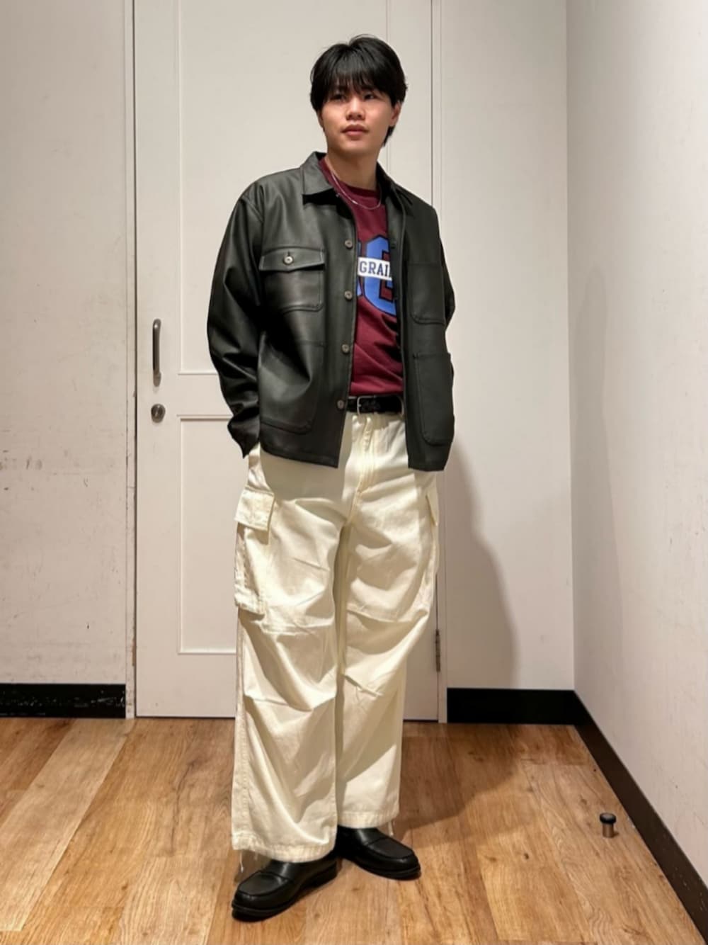 Righton(Right-on)のカバーオール「【BACK NUMBER】フェイクレザーカバーオール (シャツジャケット / レギュラーフィット / デイリーユース)」を使ったコーディネート