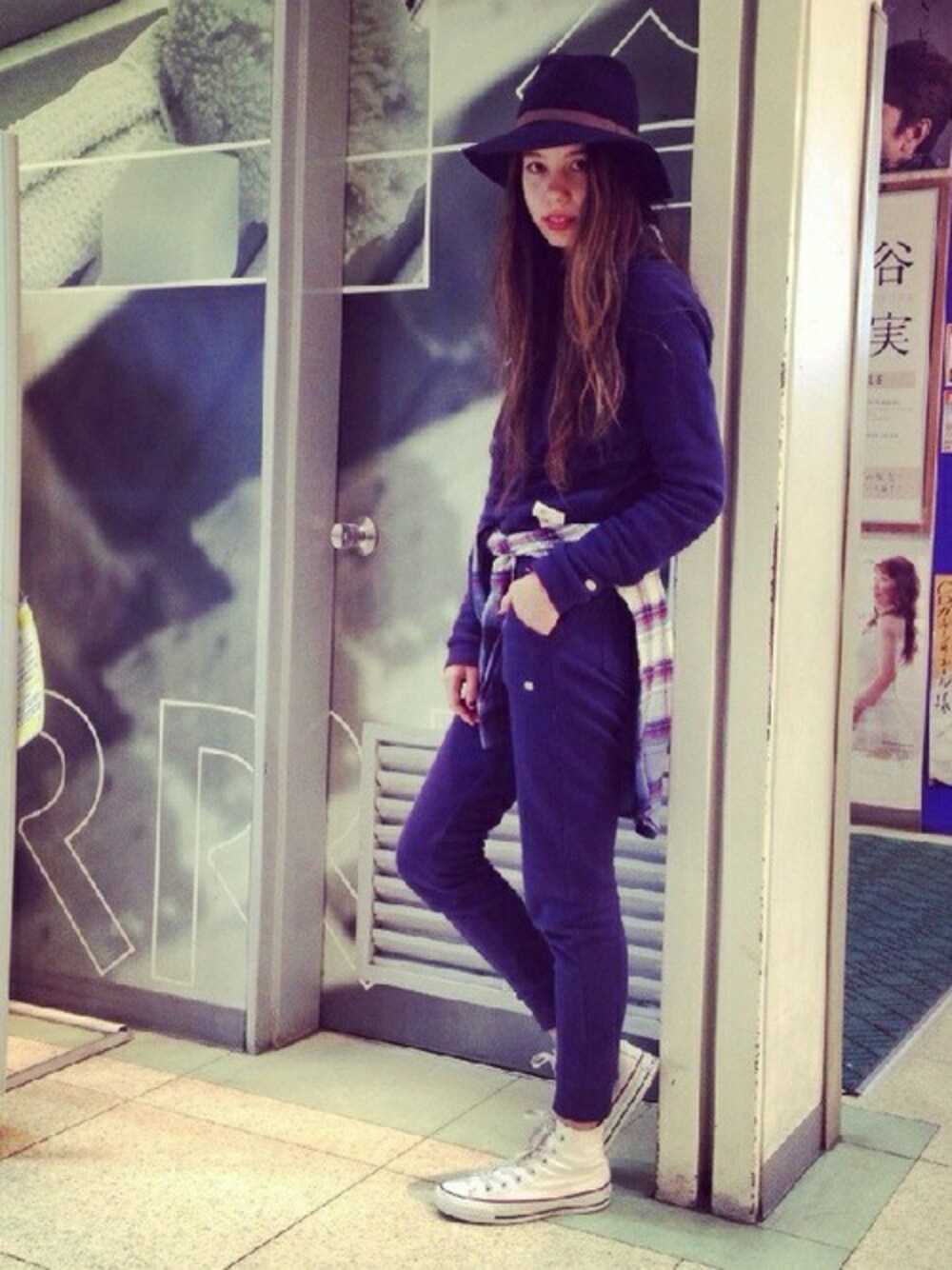 上下別々でも大活躍なスエットを セットアップで着たよ♡ 腰にはグラデーションの 珍しいチェックシャツを♪