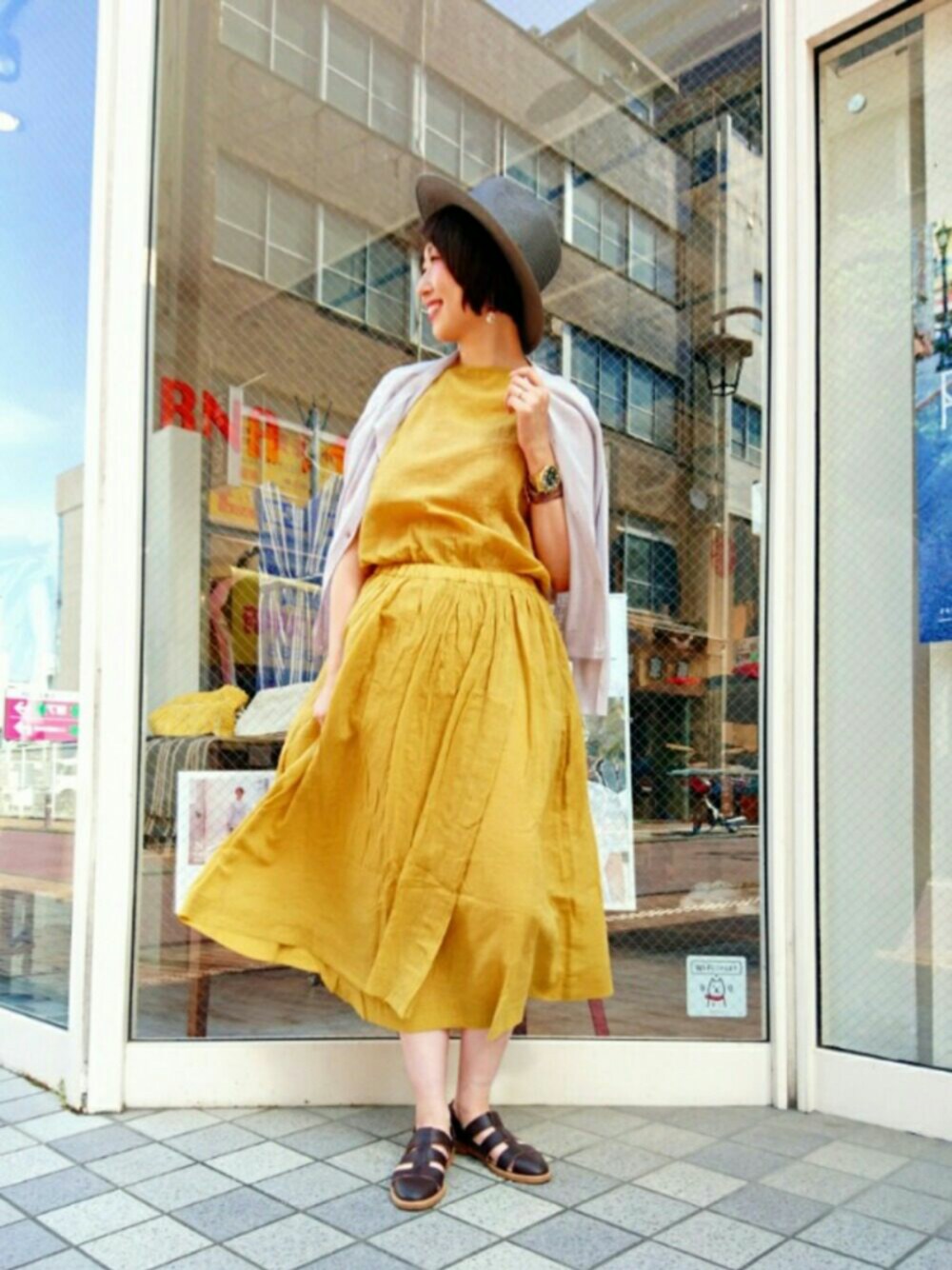 Kaoriのワンピース「D1411 コットンリネンスラブローンワンピース」を使ったコーディネート